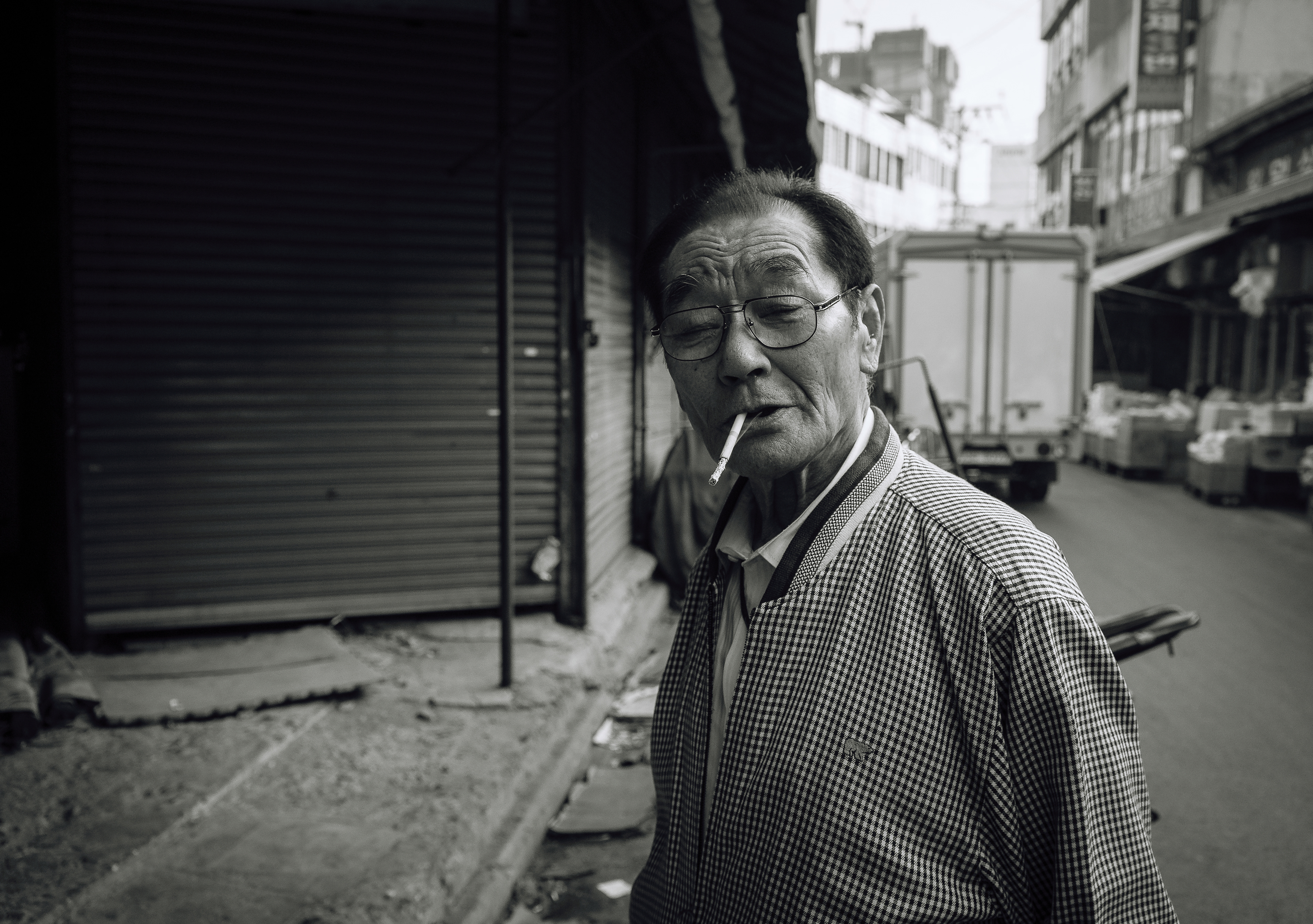 Market Smoking: Another amazing looking elderly Korean man doing what elderly Korean men do...have a smoke.