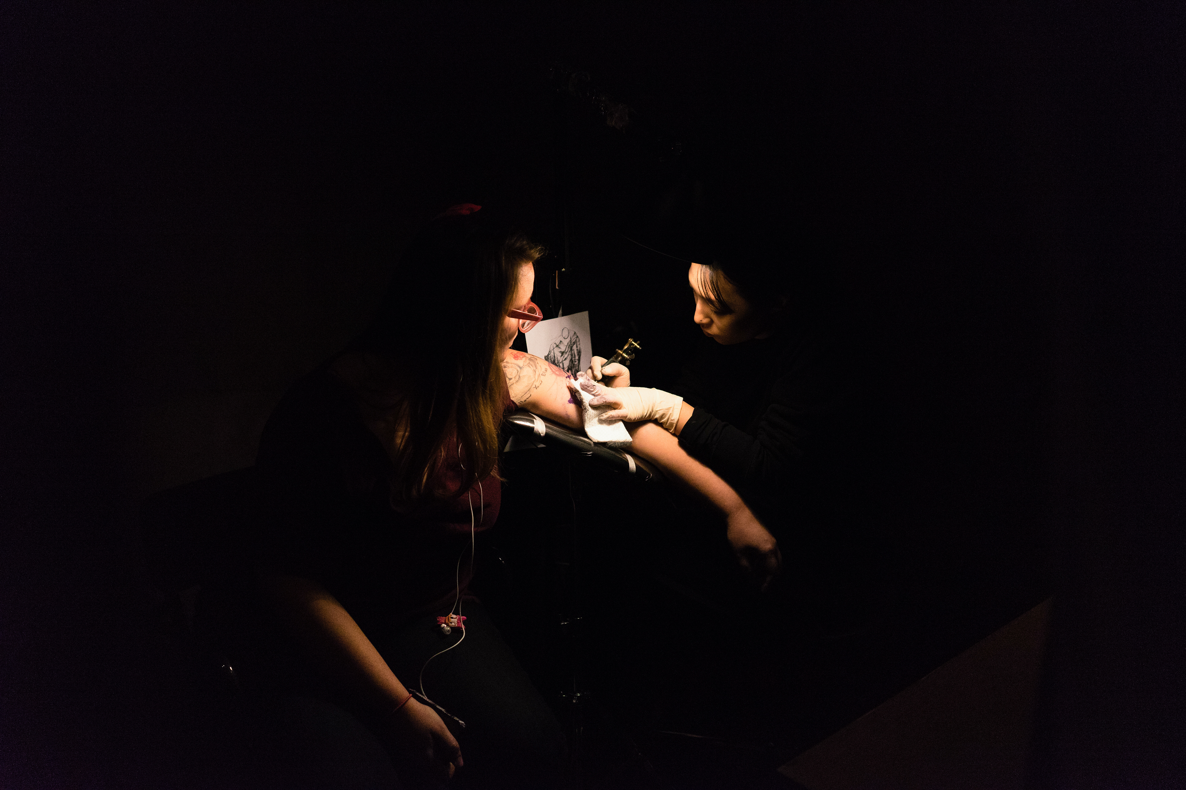 Katie & Nadi: Nadi tattoos Katie at Carpetbombing Ink. Seonyudo, Seoul, South Korea. Nadi is easily one of the most talented tattoo artists working in Asia.